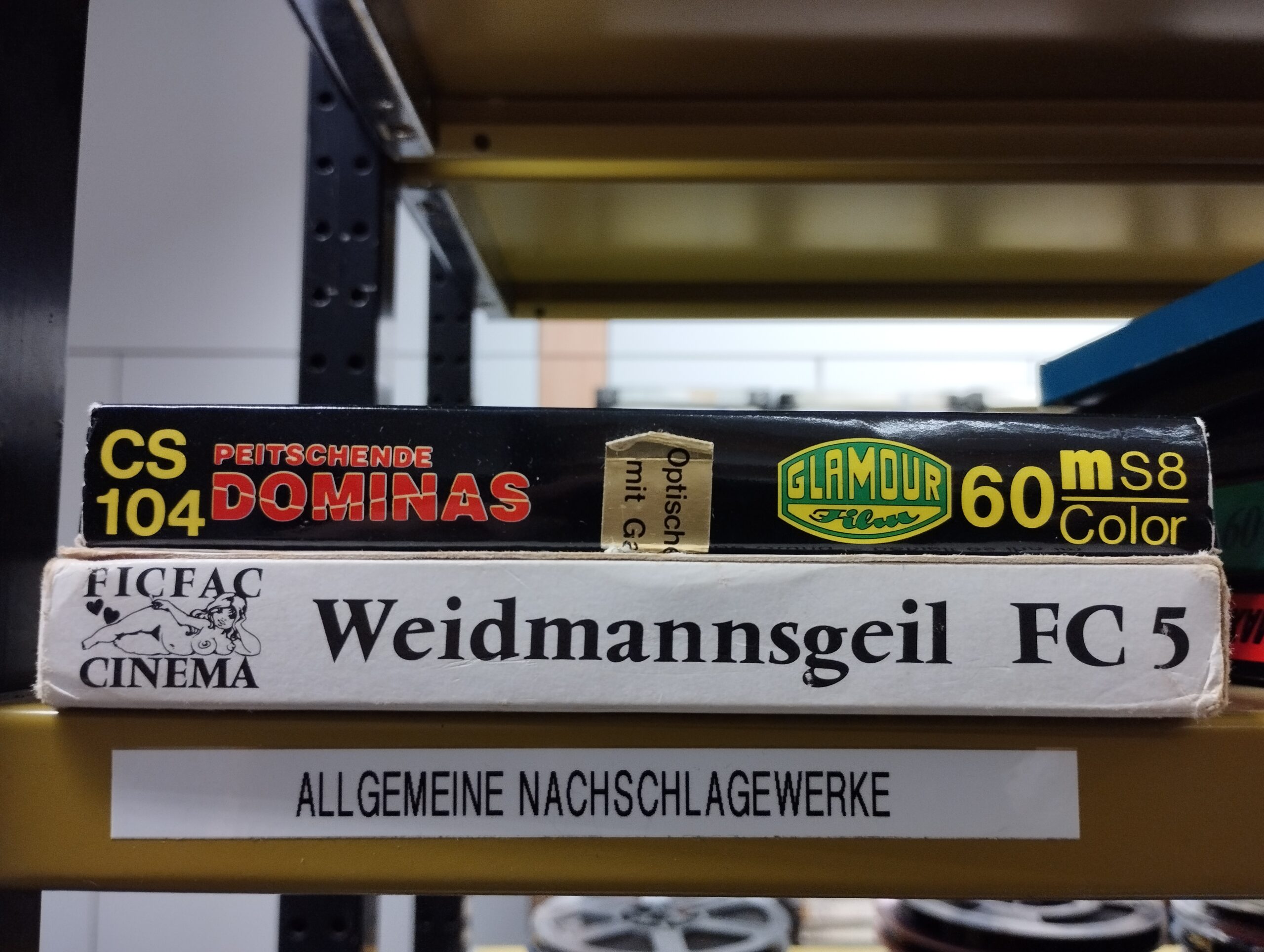 We are opening our hallowed halls to you: the film collections of Paderborn University in the basement rooms of the Heinz Nixdorf Institute. In addition to a general introduction to the archive and information on analog film technology, the tour will naturally focus on the collection of pornographic narrow-gauge films, which currently comprises around 500 films in the formats Normal 8, Super 8, 9.5 mm, and 16 mm. Smaller secondary collections on 35 mm and VHS have been added, as well as accessories and catalogs. Afterwards, you can select films from the 8 mm collection yourself, which will later be screened upstairs at the university. In between, there will be plenty of opportunities to view copies at the editing table and ask all the questions that have been burning in your mind for a long time.